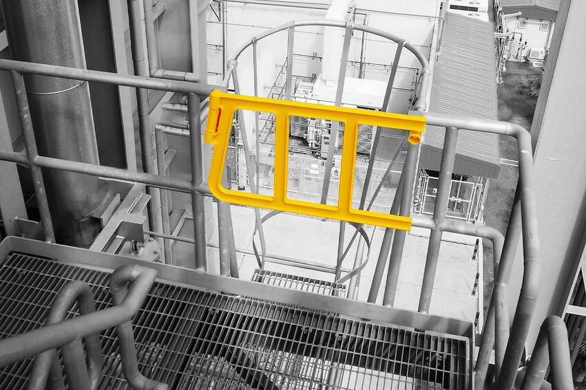 Bramki bezpieczeństwa przemysłowego AXES GATE to solidna ochrona Twoich pracowników przed upadkiem. Szczególnie podczas pracy na dużych wysokościach: na drabinach klatkowych czy platformach wysokościowych.